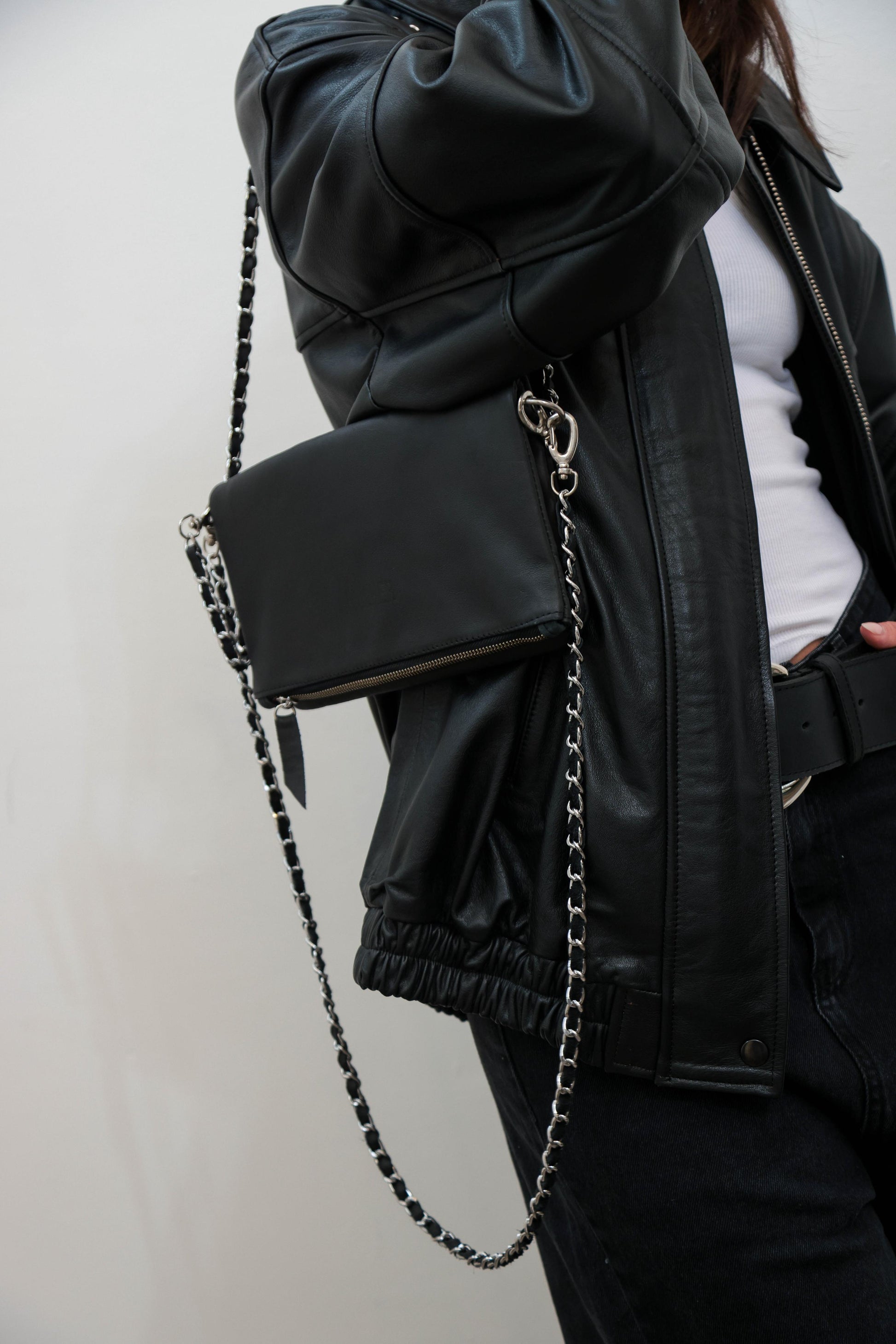 Su pequeño diseño luce dos correas de cadena, una corta para usar al hombro y otra larga para cruzarla. Este básico para salir de noche o darle un toque a tus looks de día, incluye varias divisiones de guardado y bolsillo interno y trasero. Sus herrajes son en nickel plateado.